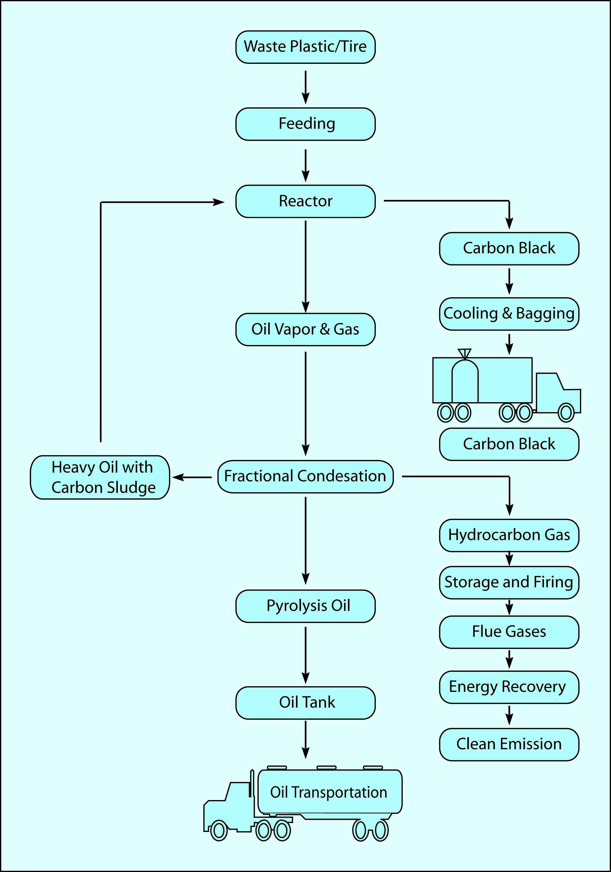 Main solids are carbon black and steel wire. Carbon black will be automatically sent out from tap hole to carbon black recovery hopper for bagging to send out Brick field as fuel.